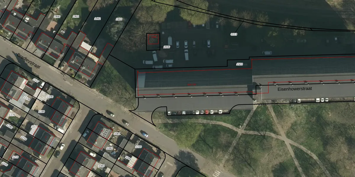 Het perceel waarop Eisenhowerstraat 553-G349 staat heeft een oppervlakte van 2274 m². Dit is een zeer groot perceel. De perceeloppervlakte wordt geregistreerd door het Kadaster. Gedetailleerde informatie over de maten van dit perceel kunt u vinden in het rapport Kadastrale kaart met maatvoering van Eisenhowerstraat 553-G349.