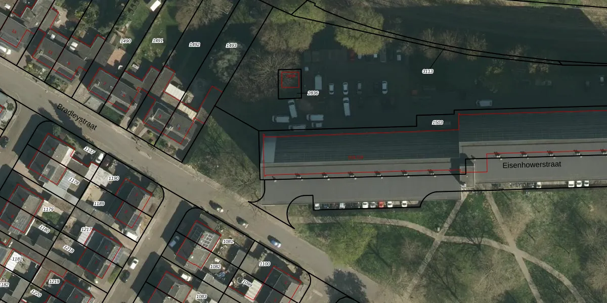 Het perceel waarop Eisenhowerstraat 553-G337 staat heeft een oppervlakte van 2274 m². Dit is een zeer groot perceel. De perceeloppervlakte wordt geregistreerd door het Kadaster. Gedetailleerde informatie over de maten van dit perceel kunt u vinden in het rapport Kadastrale kaart met maatvoering van Eisenhowerstraat 553-G337.