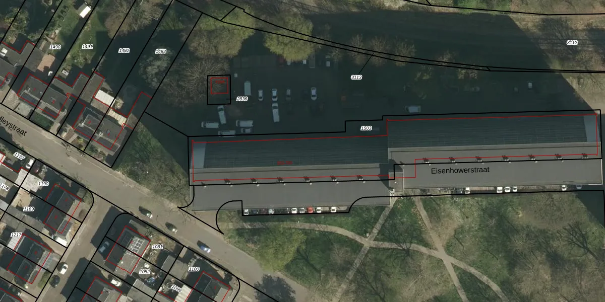 Het perceel waarop Eisenhowerstraat 553-G356 staat heeft een oppervlakte van 2274 m². Dit is een zeer groot perceel. De perceeloppervlakte wordt geregistreerd door het Kadaster. Gedetailleerde informatie over de maten van dit perceel kunt u vinden in het rapport Kadastrale kaart met maatvoering van Eisenhowerstraat 553-G356.