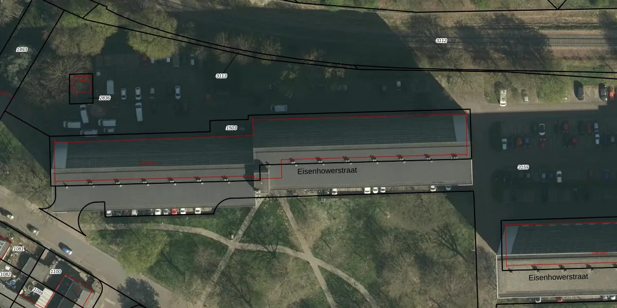 Het perceel waarop Eisenhowerstraat 600 staat heeft een oppervlakte van 2274 m². Dit is een zeer groot perceel. De perceeloppervlakte wordt geregistreerd door het Kadaster. Gedetailleerde informatie over de maten van dit perceel kunt u vinden in het rapport Kadastrale kaart met maatvoering van Eisenhowerstraat 600.