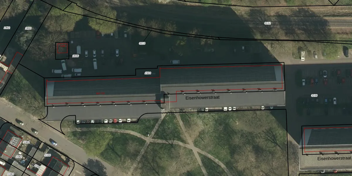 Het perceel waarop Eisenhowerstraat 601 staat heeft een oppervlakte van 2274 m². Dit is een zeer groot perceel. De perceeloppervlakte wordt geregistreerd door het Kadaster. Gedetailleerde informatie over de maten van dit perceel kunt u vinden in het rapport Kadastrale kaart met maatvoering van Eisenhowerstraat 601.