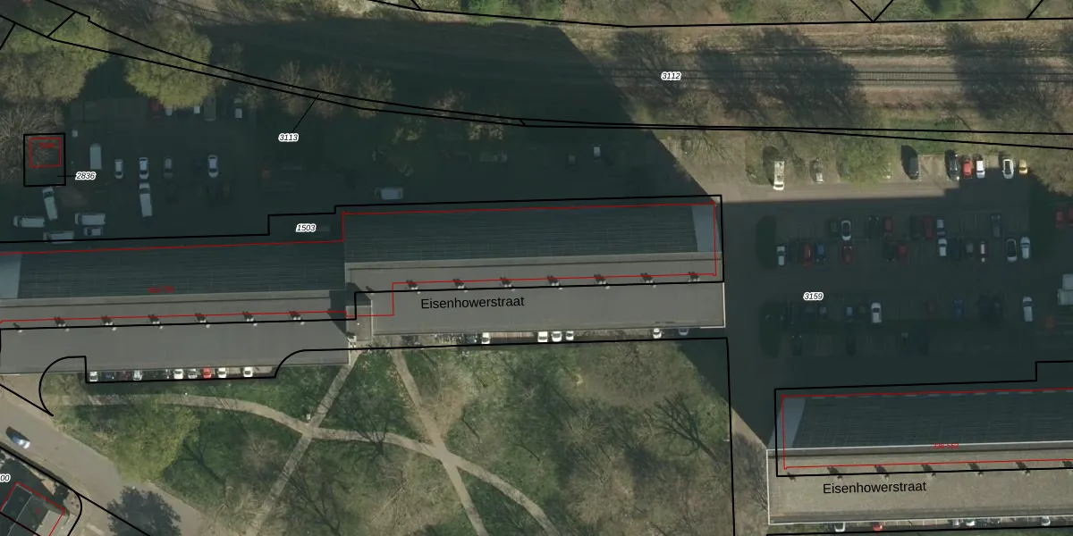 Het perceel waarop Eisenhowerstraat 612 staat heeft een oppervlakte van 2274 m². Dit is een zeer groot perceel. De perceeloppervlakte wordt geregistreerd door het Kadaster. Gedetailleerde informatie over de maten van dit perceel kunt u vinden in het rapport Kadastrale kaart met maatvoering van Eisenhowerstraat 612.