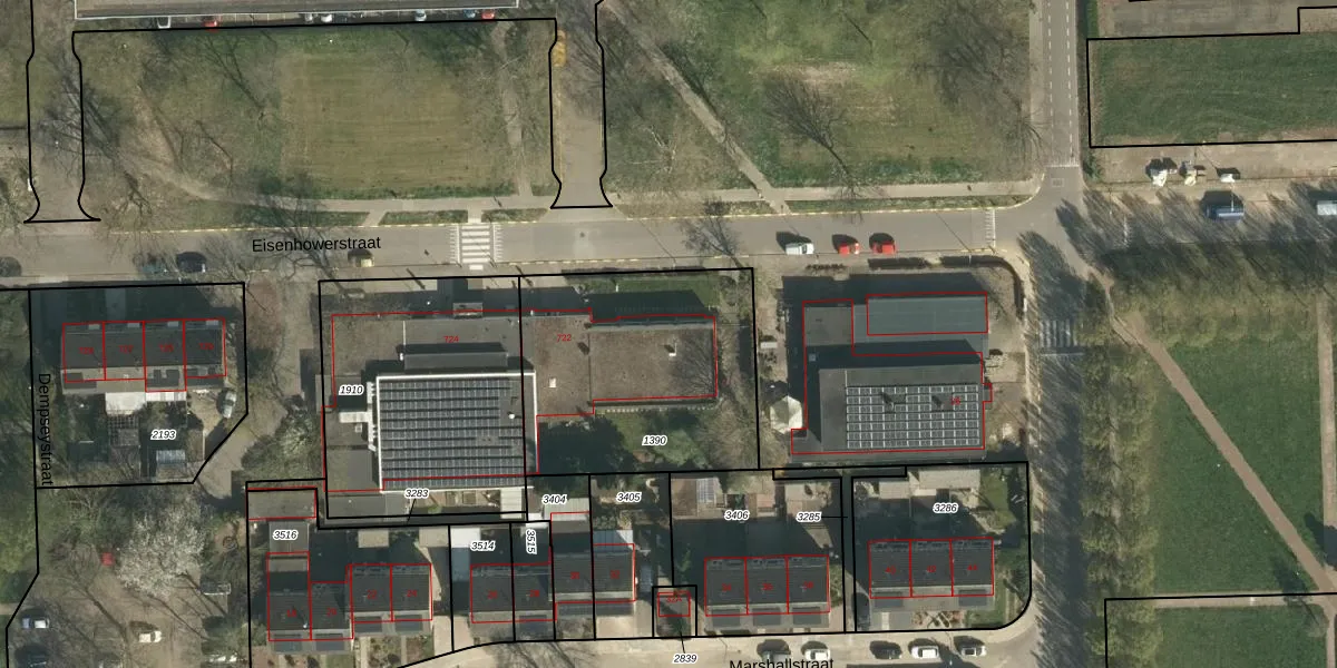 Het perceel waarop Eisenhowerstraat 722 staat heeft een oppervlakte van 1051 m². Dit is een zeer groot perceel. De perceeloppervlakte wordt geregistreerd door het Kadaster. Gedetailleerde informatie over de maten van dit perceel kunt u vinden in het rapport Kadastrale kaart met maatvoering van Eisenhowerstraat 722.
