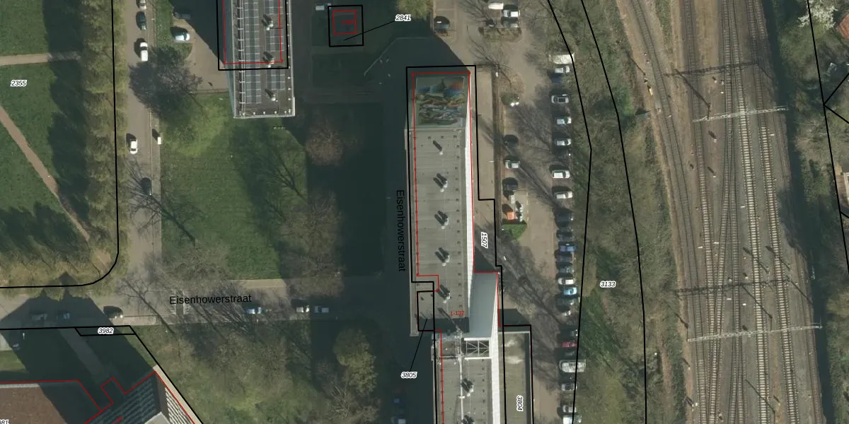 Het perceel waarop Eisenhowerstraat 74 staat heeft een oppervlakte van 1875 m². Dit is een zeer groot perceel. De perceeloppervlakte wordt geregistreerd door het Kadaster. Gedetailleerde informatie over de maten van dit perceel kunt u vinden in het rapport Kadastrale kaart met maatvoering van Eisenhowerstraat 74.