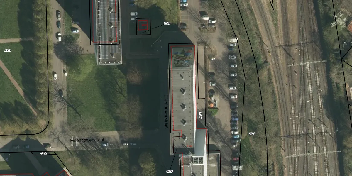Het perceel waarop Eisenhowerstraat 9 staat heeft een oppervlakte van 1875 m². Dit is een zeer groot perceel. De perceeloppervlakte wordt geregistreerd door het Kadaster. Gedetailleerde informatie over de maten van dit perceel kunt u vinden in het rapport Kadastrale kaart met maatvoering van Eisenhowerstraat 9.