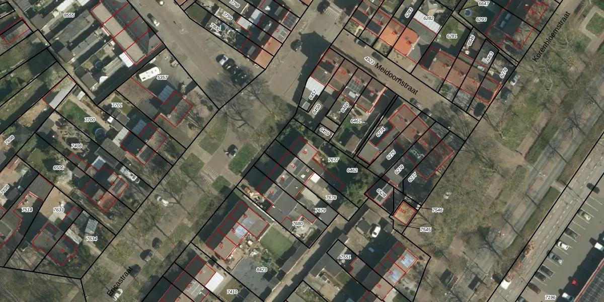 Gebruik de zoekbalk of klik op een perceel voor informatie over de adressen binnen dit perceel.
