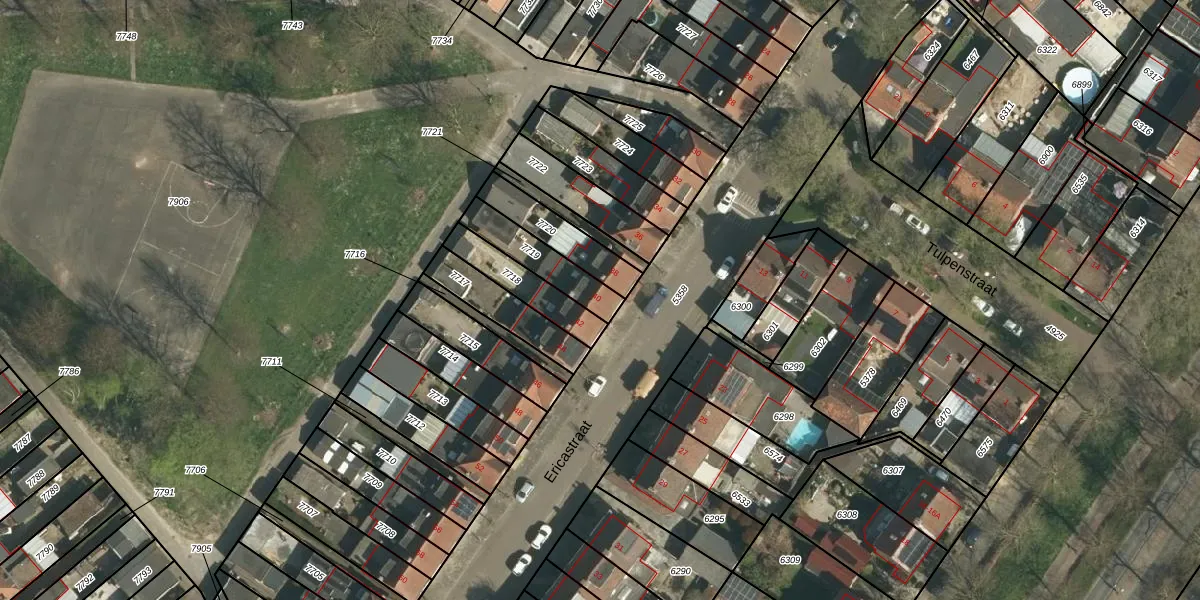 Ericastraat 40 is gelegen op kadastraal perceel STD00D7719. Deze kadastrale aanduiding is uniek en wordt gebruikt door het Kadaster om eigendomsrechten en andere zakelijke rechten vast te leggen. Het perceel maakt onderdeel uit van de kadastrale gemeente Sittard.