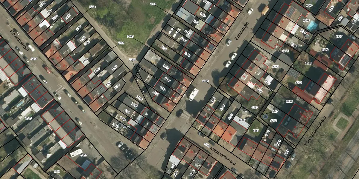 Het perceel waarop Ericastraat 64 staat heeft een oppervlakte van 166 m². Dit is een middelgroot perceel. De perceeloppervlakte wordt geregistreerd door het Kadaster. Gedetailleerde informatie over de maten van dit perceel kunt u vinden in het rapport Kadastrale kaart met maatvoering van Ericastraat 64.