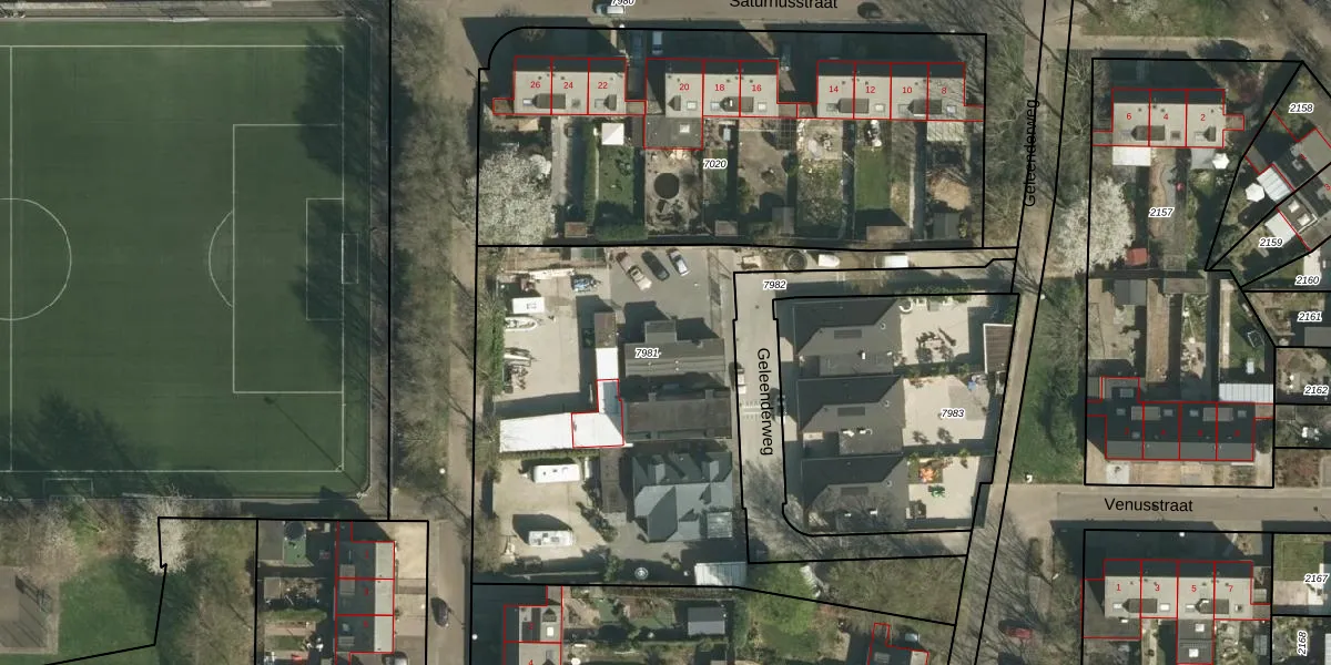 Het perceel waarop Geleenderweg 9 staat heeft een oppervlakte van 2415 m². Dit is een zeer groot perceel. De perceeloppervlakte wordt geregistreerd door het Kadaster. Gedetailleerde informatie over de maten van dit perceel kunt u vinden in het rapport Kadastrale kaart met maatvoering van Geleenderweg 9.