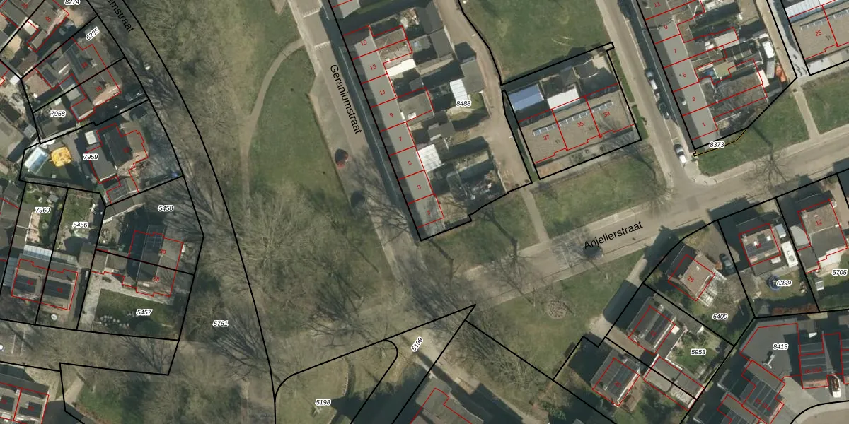Geraniumstraat 1 is gelegen op kadastraal perceel STD00D8488. Deze kadastrale aanduiding is uniek en wordt gebruikt door het Kadaster om eigendomsrechten en andere zakelijke rechten vast te leggen. Het perceel maakt onderdeel uit van de kadastrale gemeente Sittard.
