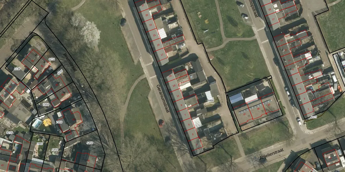 Geraniumstraat 13 is gelegen op kadastraal perceel STD00D8488. Deze kadastrale aanduiding is uniek en wordt gebruikt door het Kadaster om eigendomsrechten en andere zakelijke rechten vast te leggen. Het perceel maakt onderdeel uit van de kadastrale gemeente Sittard.