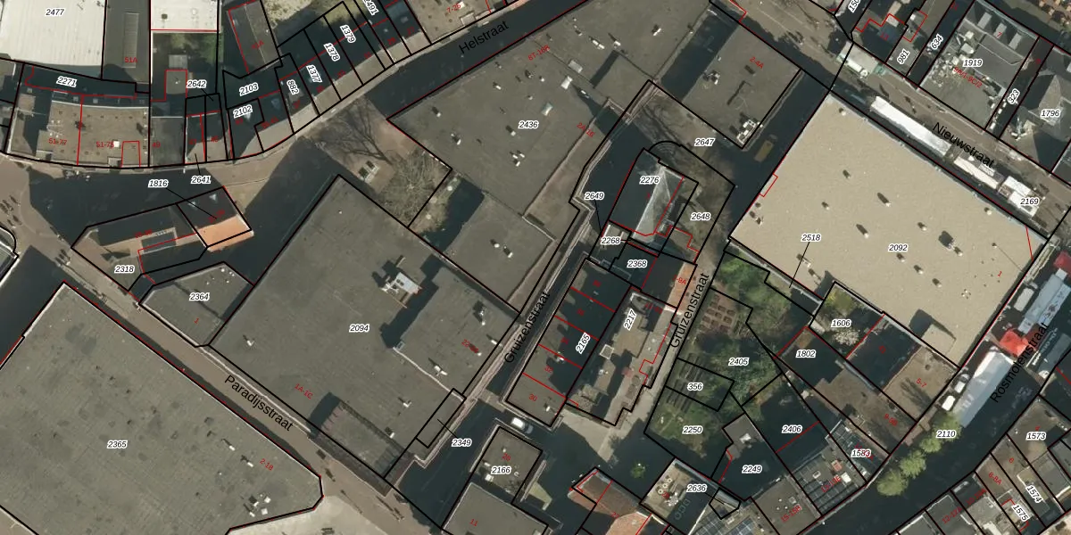 Gruizenstraat 16 is gelegen op kadastraal perceel STD00F2436. Deze kadastrale aanduiding is uniek en wordt gebruikt door het Kadaster om eigendomsrechten en andere zakelijke rechten vast te leggen. Het perceel maakt onderdeel uit van de kadastrale gemeente Sittard.