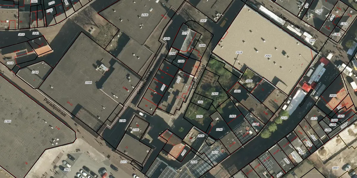 Gruizenstraat 21 is gelegen op kadastraal perceel STD00F2217. Deze kadastrale aanduiding is uniek en wordt gebruikt door het Kadaster om eigendomsrechten en andere zakelijke rechten vast te leggen. Het perceel maakt onderdeel uit van de kadastrale gemeente Sittard.