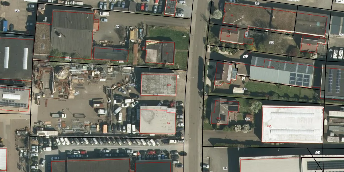 Het perceel waarop Handelsstraat 26-A staat heeft een oppervlakte van 3780 m². Dit is een zeer groot perceel. De perceeloppervlakte wordt geregistreerd door het Kadaster. Gedetailleerde informatie over de maten van dit perceel kunt u vinden in het rapport Kadastrale kaart met maatvoering van Handelsstraat 26-A.