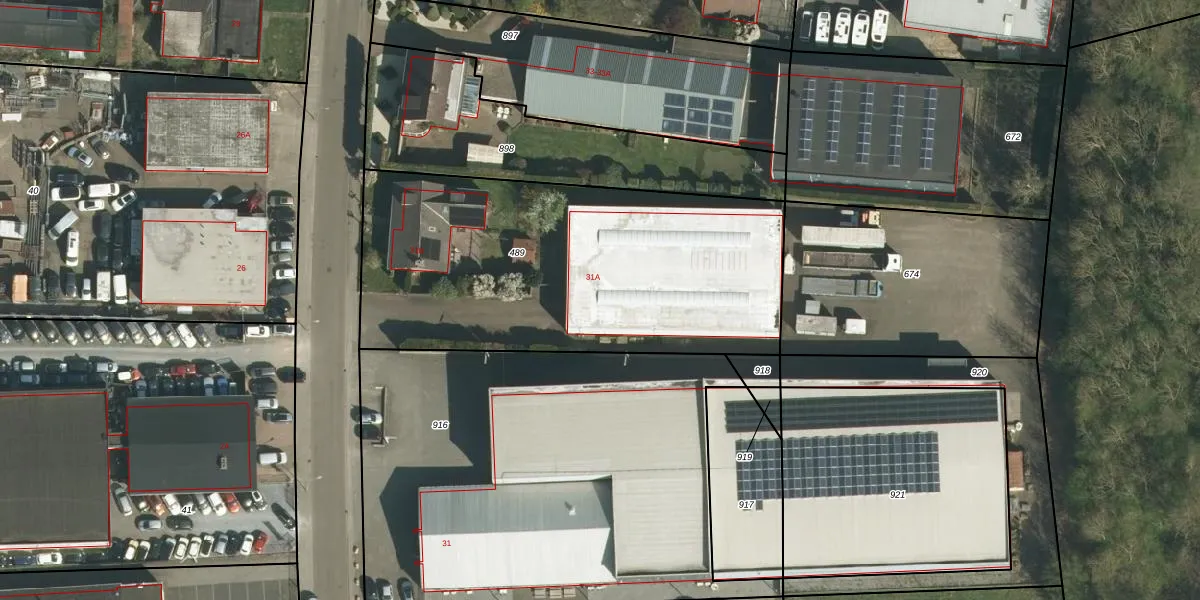 Het perceel waarop Handelsstraat 31-A staat heeft een oppervlakte van 1960 m². Dit is een zeer groot perceel. De perceeloppervlakte wordt geregistreerd door het Kadaster. Gedetailleerde informatie over de maten van dit perceel kunt u vinden in het rapport Kadastrale kaart met maatvoering van Handelsstraat 31-A.