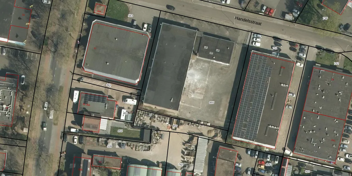 Het perceel waarop Handelsstraat 36-G25 staat heeft een oppervlakte van 3065 m². Dit is een zeer groot perceel. De perceeloppervlakte wordt geregistreerd door het Kadaster. Gedetailleerde informatie over de maten van dit perceel kunt u vinden in het rapport Kadastrale kaart met maatvoering van Handelsstraat 36-G25.