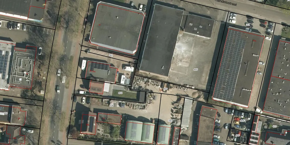 Het perceel waarop Handelsstraat 36-G45 staat heeft een oppervlakte van 3065 m². Dit is een zeer groot perceel. De perceeloppervlakte wordt geregistreerd door het Kadaster. Gedetailleerde informatie over de maten van dit perceel kunt u vinden in het rapport Kadastrale kaart met maatvoering van Handelsstraat 36-G45.