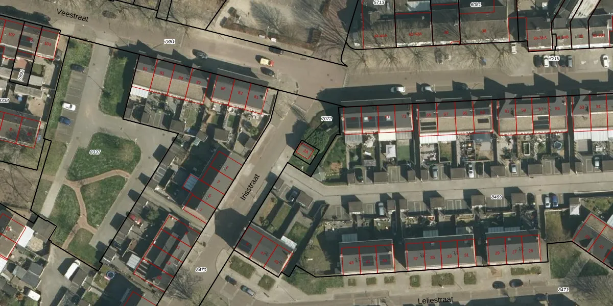 Het perceel waarop Irisstraat 2-A staat heeft een oppervlakte van 40 m². Dit is een klein perceel. De perceeloppervlakte wordt geregistreerd door het Kadaster. Gedetailleerde informatie over de maten van dit perceel kunt u vinden in het rapport Kadastrale kaart met maatvoering van Irisstraat 2-A.