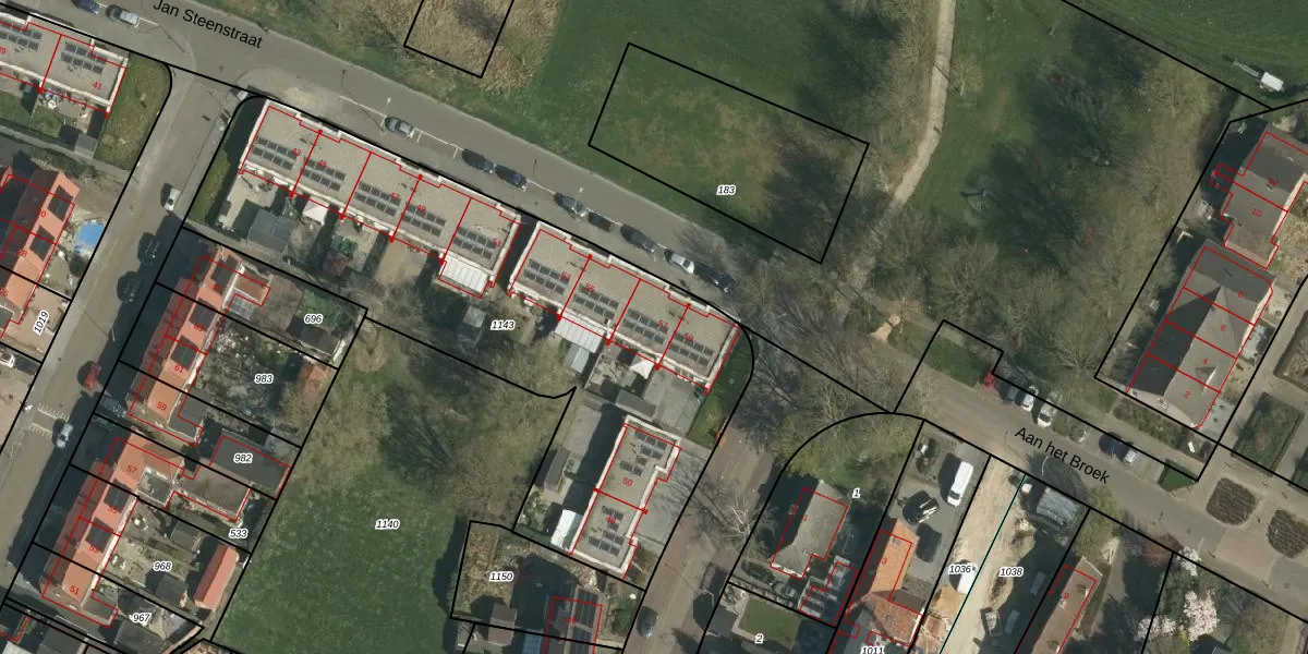 Het perceel waarop Jan Steenstraat 57 staat heeft een oppervlakte van 2560 m². Dit is een zeer groot perceel. De perceeloppervlakte wordt geregistreerd door het Kadaster. Gedetailleerde informatie over de maten van dit perceel kunt u vinden in het rapport Kadastrale kaart met maatvoering van Jan Steenstraat 57.