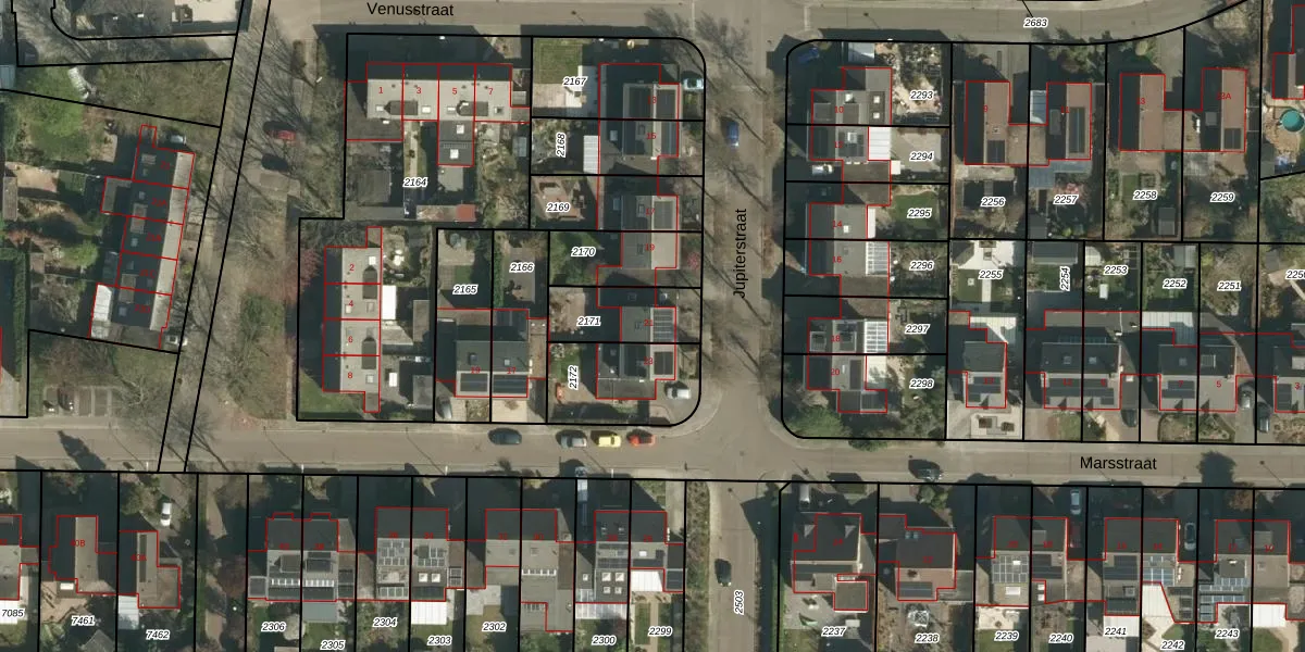 Jupiterstraat 21 is gelegen op kadastraal perceel STD00G2171. Deze kadastrale aanduiding is uniek en wordt gebruikt door het Kadaster om eigendomsrechten en andere zakelijke rechten vast te leggen. Het perceel maakt onderdeel uit van de kadastrale gemeente Sittard.
