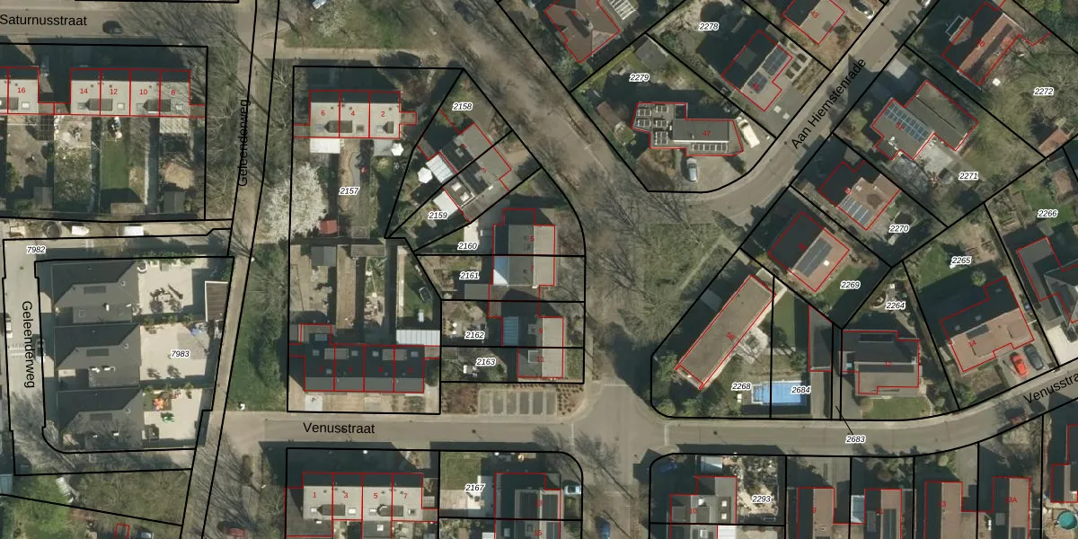 Jupiterstraat 7 is gelegen op kadastraal perceel STD00G2161. Deze kadastrale aanduiding is uniek en wordt gebruikt door het Kadaster om eigendomsrechten en andere zakelijke rechten vast te leggen. Het perceel maakt onderdeel uit van de kadastrale gemeente Sittard.