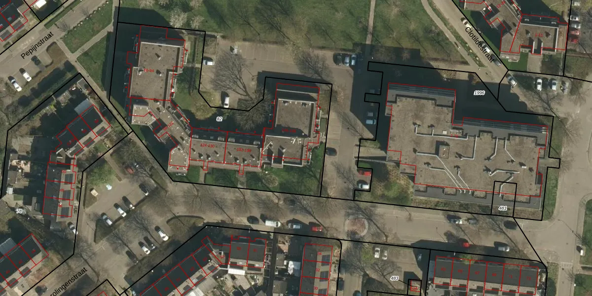 Het perceel waarop Karolingenstraat 166 staat heeft een oppervlakte van 2690 m². Dit is een zeer groot perceel. De perceeloppervlakte wordt geregistreerd door het Kadaster. Gedetailleerde informatie over de maten van dit perceel kunt u vinden in het rapport Kadastrale kaart met maatvoering van Karolingenstraat 166.
