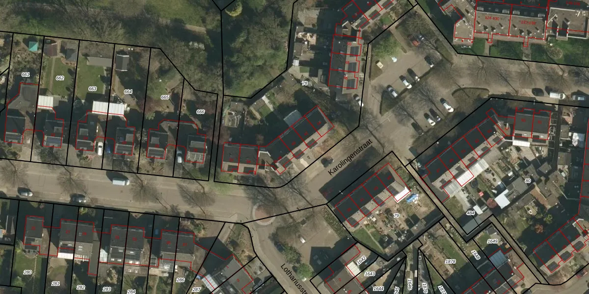 Karolingenstraat 40 is gelegen op kadastraal perceel STD00S78. Deze kadastrale aanduiding is uniek en wordt gebruikt door het Kadaster om eigendomsrechten en andere zakelijke rechten vast te leggen. Het perceel maakt onderdeel uit van de kadastrale gemeente Sittard.
