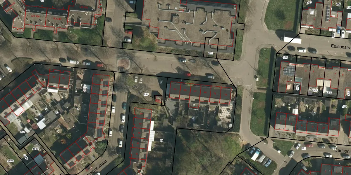 Het perceel waarop Karolingenstraat 63 staat heeft een oppervlakte van 2910 m². Dit is een zeer groot perceel. De perceeloppervlakte wordt geregistreerd door het Kadaster. Gedetailleerde informatie over de maten van dit perceel kunt u vinden in het rapport Kadastrale kaart met maatvoering van Karolingenstraat 63.