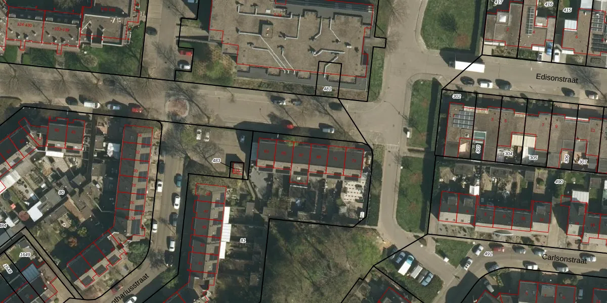 Het perceel waarop Karolingenstraat 67 staat heeft een oppervlakte van 2910 m². Dit is een zeer groot perceel. De perceeloppervlakte wordt geregistreerd door het Kadaster. Gedetailleerde informatie over de maten van dit perceel kunt u vinden in het rapport Kadastrale kaart met maatvoering van Karolingenstraat 67.