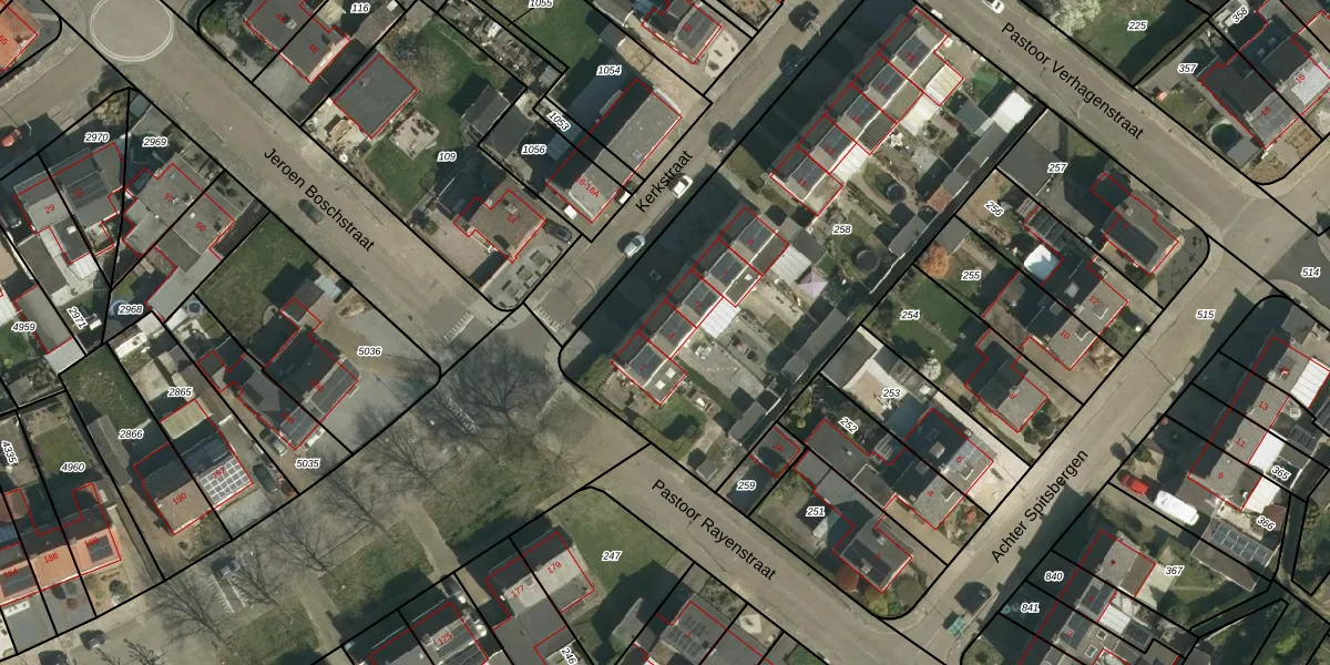 Het perceel waarop Kerkstraat 3 staat heeft een oppervlakte van 2410 m². Dit is een zeer groot perceel. De perceeloppervlakte wordt geregistreerd door het Kadaster. Gedetailleerde informatie over de maten van dit perceel kunt u vinden in het rapport Kadastrale kaart met maatvoering van Kerkstraat 3.
