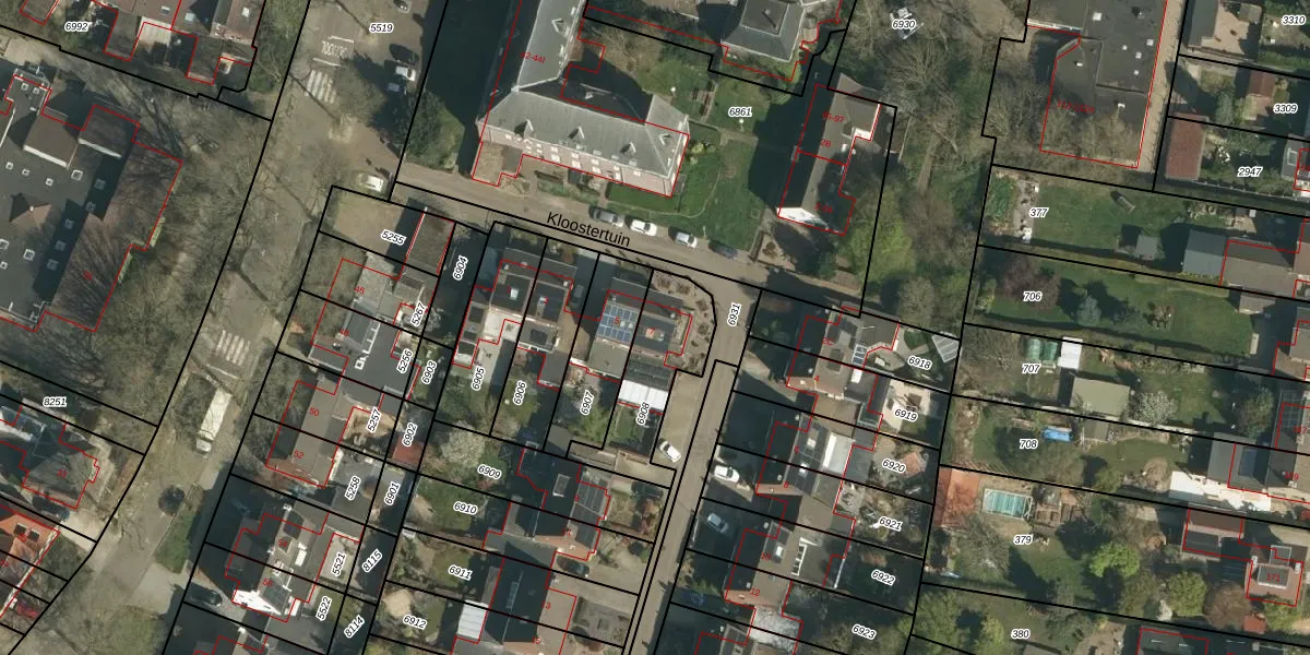 Kloostertuin 7 is gelegen op kadastraal perceel STD00D6908. Deze kadastrale aanduiding is uniek en wordt gebruikt door het Kadaster om eigendomsrechten en andere zakelijke rechten vast te leggen. Het perceel maakt onderdeel uit van de kadastrale gemeente Sittard.