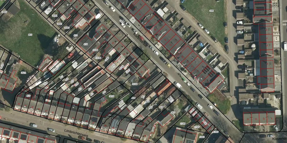 Korenstraat 12 is gelegen op kadastraal perceel STD00K3158. Deze kadastrale aanduiding is uniek en wordt gebruikt door het Kadaster om eigendomsrechten en andere zakelijke rechten vast te leggen. Het perceel maakt onderdeel uit van de kadastrale gemeente Sittard.