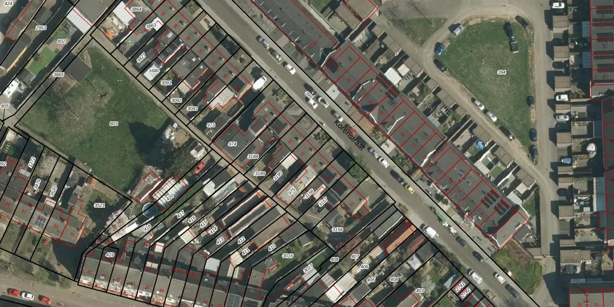 Korenstraat 20 is gelegen op kadastraal perceel STD00K3190. Deze kadastrale aanduiding is uniek en wordt gebruikt door het Kadaster om eigendomsrechten en andere zakelijke rechten vast te leggen. Het perceel maakt onderdeel uit van de kadastrale gemeente Sittard.