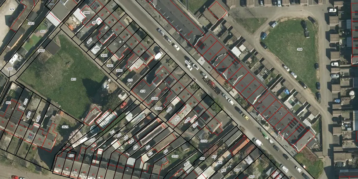 Het perceel waarop Korenstraat 22 staat heeft een oppervlakte van 163 m². Dit is een middelgroot perceel. De perceeloppervlakte wordt geregistreerd door het Kadaster. Gedetailleerde informatie over de maten van dit perceel kunt u vinden in het rapport Kadastrale kaart met maatvoering van Korenstraat 22.