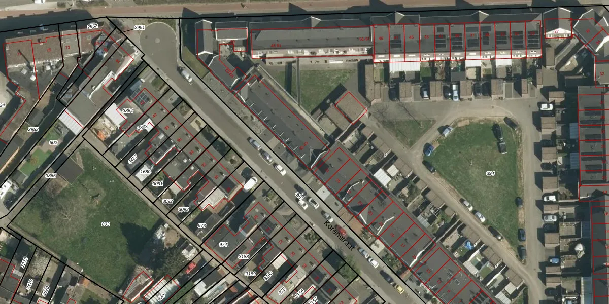 Korenstraat 33 is gelegen op kadastraal perceel STD00K394. Deze kadastrale aanduiding is uniek en wordt gebruikt door het Kadaster om eigendomsrechten en andere zakelijke rechten vast te leggen. Het perceel maakt onderdeel uit van de kadastrale gemeente Sittard.