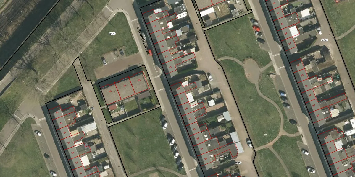 Lavendelstraat 39 is gelegen op kadastraal perceel STD00D8490. Deze kadastrale aanduiding is uniek en wordt gebruikt door het Kadaster om eigendomsrechten en andere zakelijke rechten vast te leggen. Het perceel maakt onderdeel uit van de kadastrale gemeente Sittard.