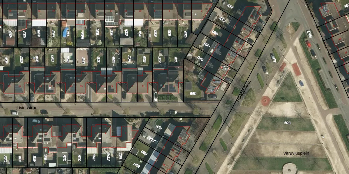 Het perceel waarop Liviusstraat 1 staat heeft een oppervlakte van 296 m². Dit is een middelgroot perceel. De perceeloppervlakte wordt geregistreerd door het Kadaster. Gedetailleerde informatie over de maten van dit perceel kunt u vinden in het rapport Kadastrale kaart met maatvoering van Liviusstraat 1.