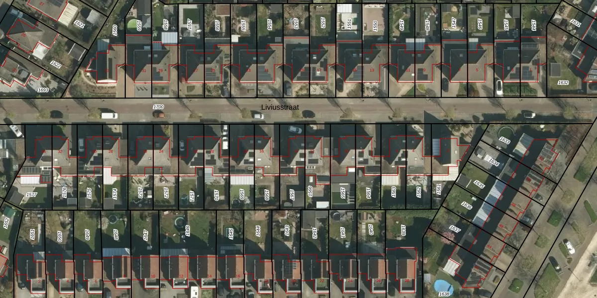 Liviusstraat 14 is gelegen op kadastraal perceel STD00T1567. Deze kadastrale aanduiding is uniek en wordt gebruikt door het Kadaster om eigendomsrechten en andere zakelijke rechten vast te leggen. Het perceel maakt onderdeel uit van de kadastrale gemeente Sittard.