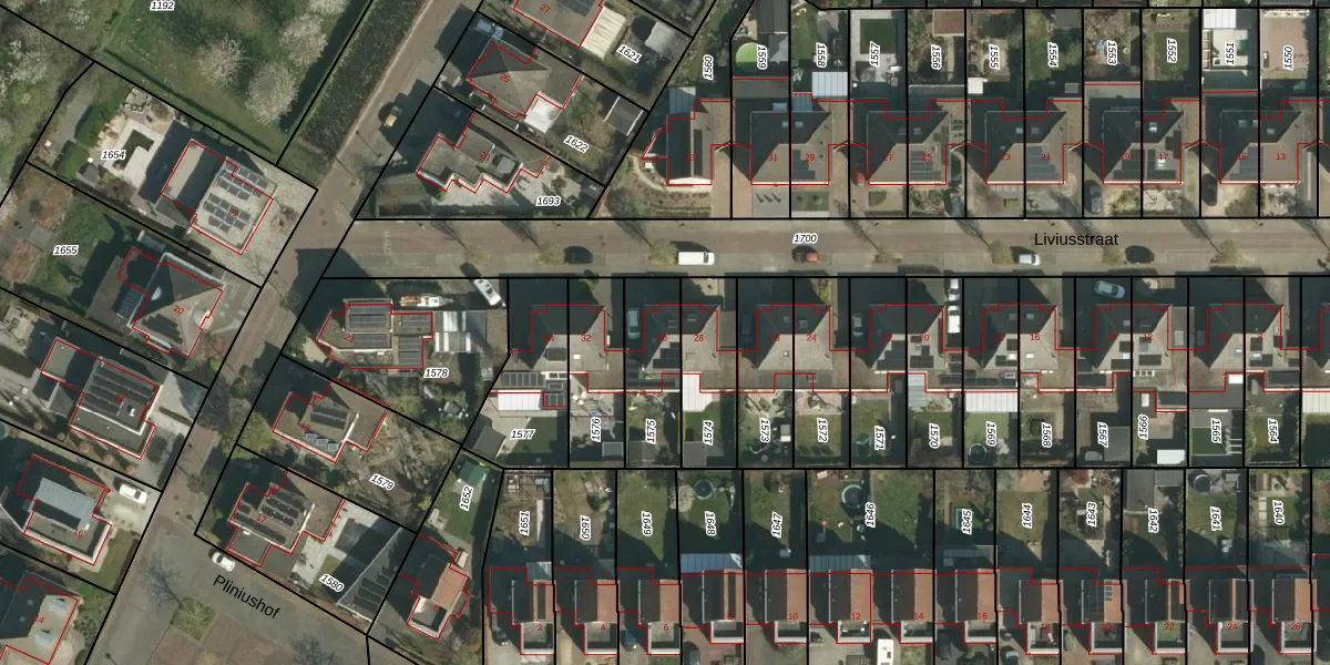 Het perceel waarop Liviusstraat 30 staat heeft een oppervlakte van 246 m². Dit is een middelgroot perceel. De perceeloppervlakte wordt geregistreerd door het Kadaster. Gedetailleerde informatie over de maten van dit perceel kunt u vinden in het rapport Kadastrale kaart met maatvoering van Liviusstraat 30.