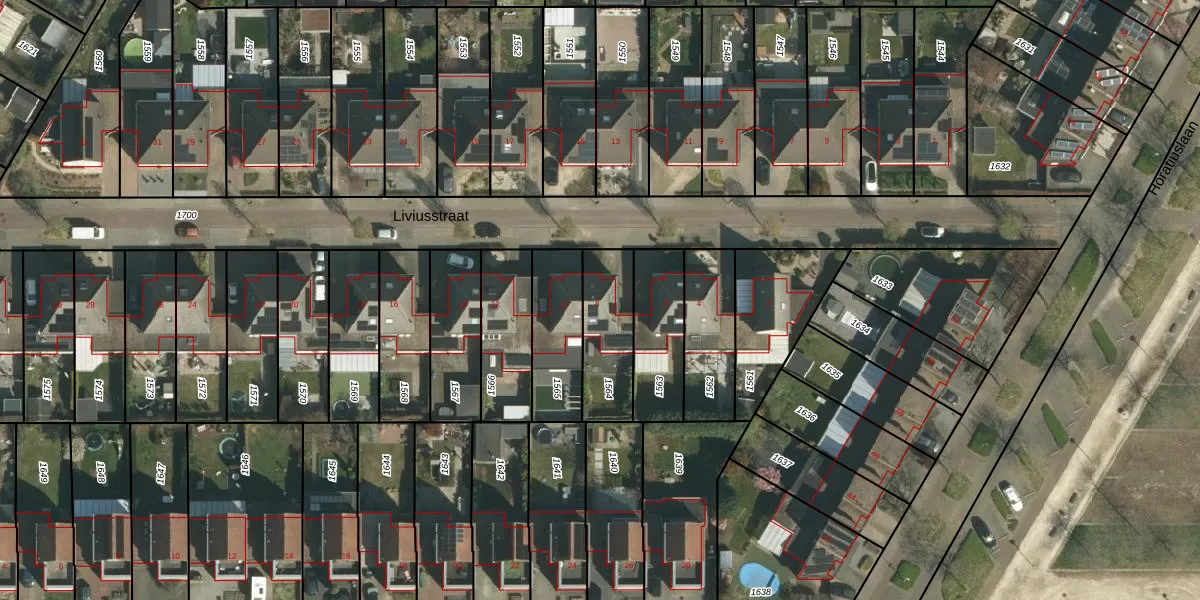 Het perceel waarop Liviusstraat 8 staat heeft een oppervlakte van 245 m². Dit is een middelgroot perceel. De perceeloppervlakte wordt geregistreerd door het Kadaster. Gedetailleerde informatie over de maten van dit perceel kunt u vinden in het rapport Kadastrale kaart met maatvoering van Liviusstraat 8.