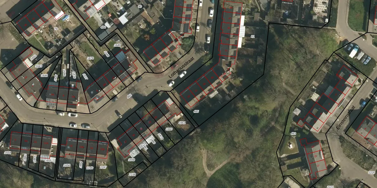 Het perceel waarop Lothariusstraat 29 staat heeft een oppervlakte van 2910 m². Dit is een zeer groot perceel. De perceeloppervlakte wordt geregistreerd door het Kadaster. Gedetailleerde informatie over de maten van dit perceel kunt u vinden in het rapport Kadastrale kaart met maatvoering van Lothariusstraat 29.