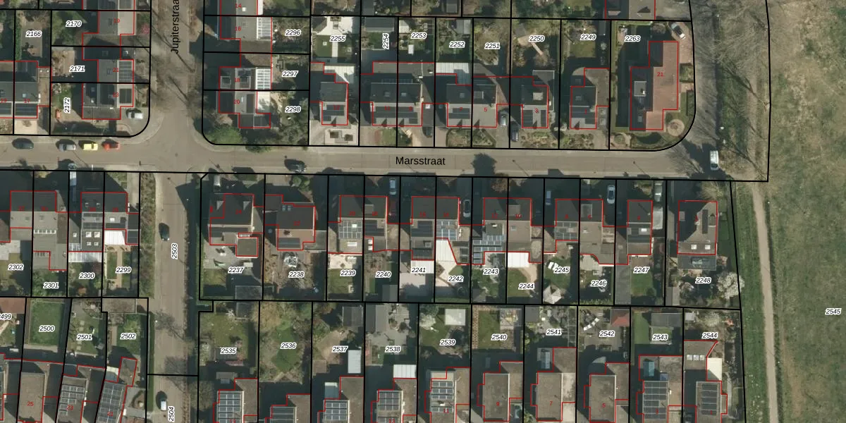 Het perceel waarop Marsstraat 16 staat heeft een oppervlakte van 255 m². Dit is een middelgroot perceel. De perceeloppervlakte wordt geregistreerd door het Kadaster. Gedetailleerde informatie over de maten van dit perceel kunt u vinden in het rapport Kadastrale kaart met maatvoering van Marsstraat 16.