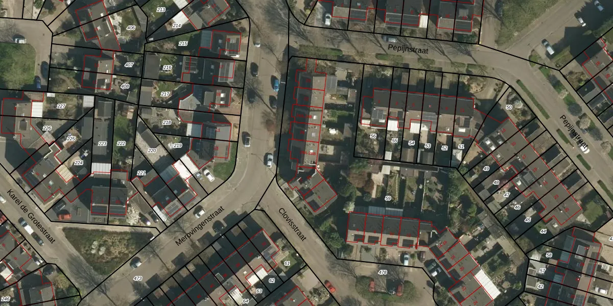 Het perceel waarop Merovingenstraat 28-B staat heeft een oppervlakte van 3405 m². Dit is een zeer groot perceel. De perceeloppervlakte wordt geregistreerd door het Kadaster. Gedetailleerde informatie over de maten van dit perceel kunt u vinden in het rapport Kadastrale kaart met maatvoering van Merovingenstraat 28-B.