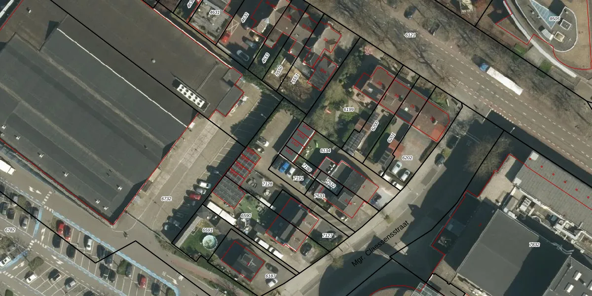 Het perceel waarop Mgr. Claessensstraat 1-G2 staat heeft een oppervlakte van 395 m². Dit is een groot perceel. De perceeloppervlakte wordt geregistreerd door het Kadaster. Gedetailleerde informatie over de maten van dit perceel kunt u vinden in het rapport Kadastrale kaart met maatvoering van Mgr. Claessensstraat 1-G2.