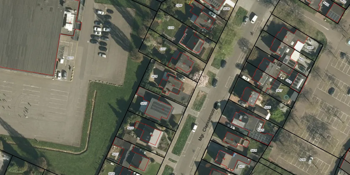 Mgr. Claessensstraat 29 is gelegen op kadastraal perceel STD00D5414. Deze kadastrale aanduiding is uniek en wordt gebruikt door het Kadaster om eigendomsrechten en andere zakelijke rechten vast te leggen. Het perceel maakt onderdeel uit van de kadastrale gemeente Sittard.