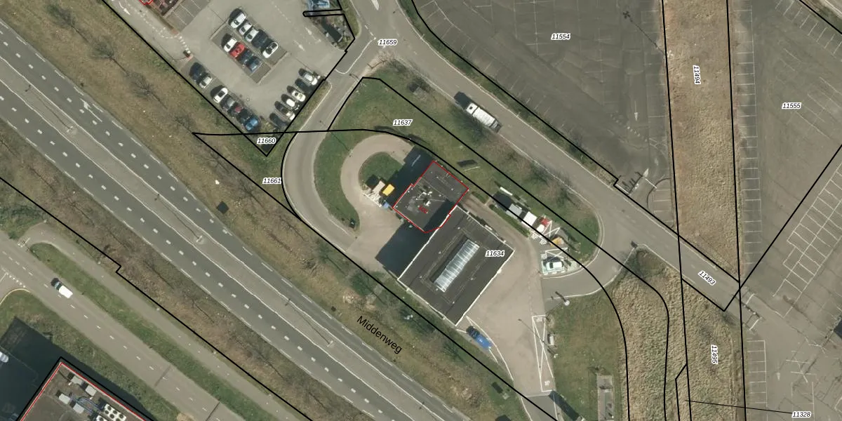 Het perceel waarop Middenweg 100 staat heeft een oppervlakte van 2955 m². Dit is een zeer groot perceel. De perceeloppervlakte wordt geregistreerd door het Kadaster. Gedetailleerde informatie over de maten van dit perceel kunt u vinden in het rapport Kadastrale kaart met maatvoering van Middenweg 100.