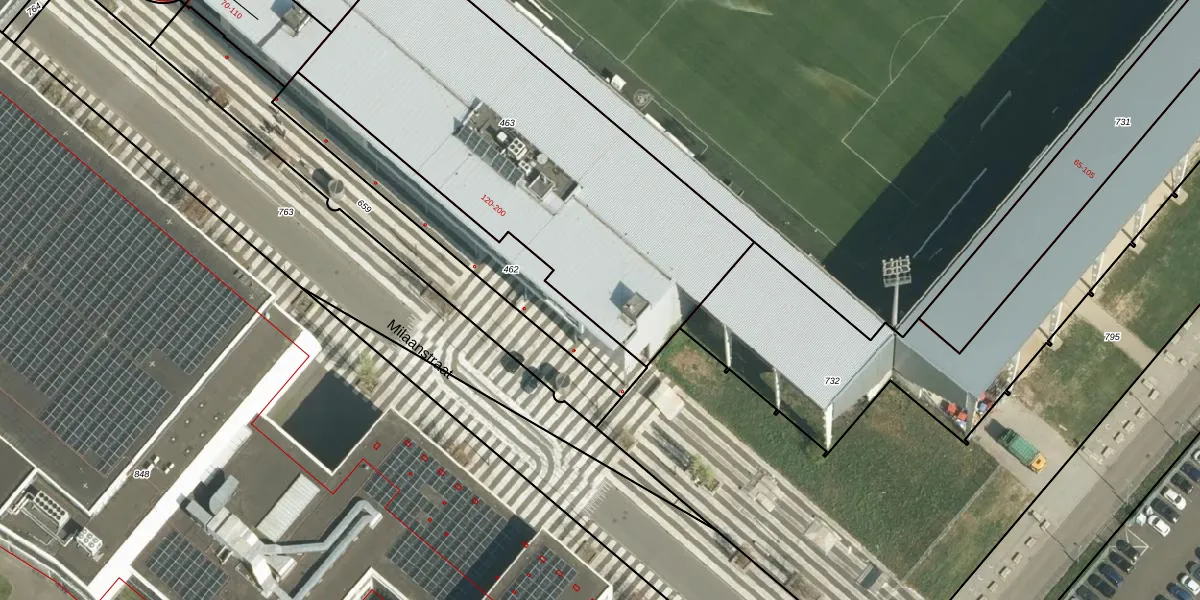 Het perceel waarop Milaanstraat 200 staat heeft een oppervlakte van 2075 m². Dit is een zeer groot perceel. De perceeloppervlakte wordt geregistreerd door het Kadaster. Gedetailleerde informatie over de maten van dit perceel kunt u vinden in het rapport Kadastrale kaart met maatvoering van Milaanstraat 200.