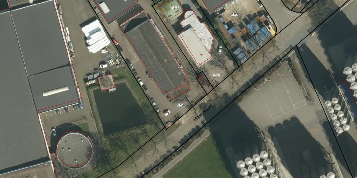 Het perceel waarop Millenerweg 24-A staat heeft een oppervlakte van 3035 m². Dit is een zeer groot perceel. De perceeloppervlakte wordt geregistreerd door het Kadaster. Gedetailleerde informatie over de maten van dit perceel kunt u vinden in het rapport Kadastrale kaart met maatvoering van Millenerweg 24-A.