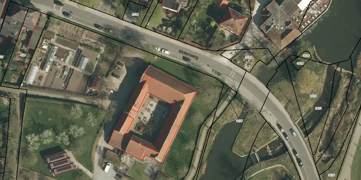 Het perceel waarop Molenweg 59 staat heeft een oppervlakte van 1,8 ha. Dit is een zeer groot perceel. De perceeloppervlakte wordt geregistreerd door het Kadaster. Gedetailleerde informatie over de maten van dit perceel kunt u vinden in het rapport Kadastrale kaart met maatvoering van Molenweg 59.