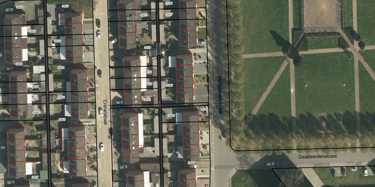 Montgomerystraat 10 is gelegen op kadastraal perceel STD00K3519. Deze kadastrale aanduiding is uniek en wordt gebruikt door het Kadaster om eigendomsrechten en andere zakelijke rechten vast te leggen. Het perceel maakt onderdeel uit van de kadastrale gemeente Sittard.